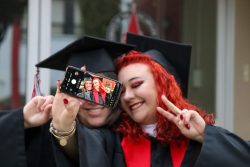 En ese momento, ambas autoridades pidieron a los egresados girar la borla de su birrete de derecha a izquierda. Lo que significa su transición de graduando a graduado.