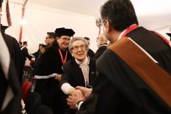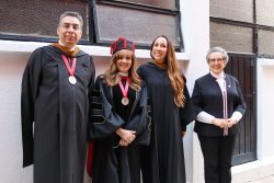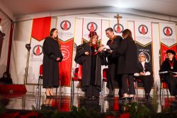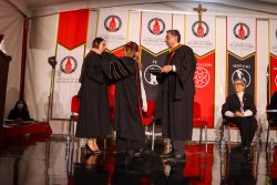Acto seguido, la Dra. Ma. Fabiola otorgó el Grado Académico Mexicano, mientras que el Dr. Thomas Evans, Presidente de University of the Incarnate Word, otorgó el Grado Académico Norteamericano a través de un video especialmente preparado para esta ceremonia, debido a que en esta ocasión no pudo estar presente.