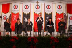 El presídium se conformó por el Mtro. Marcos Fragoso Ruiz, Vicepresidente de Asuntos Internacionales de University of the Incarnate Word; la Dra. Fabiola Iturbide Ruiz, Rectora de Incarnate Word, campus Ciudad de México; Sor Martha Estela Pérez Curiel, Hermana de la Caridad del Verbo Encarnado; Rosa María Cordero Nieto, como invitada de honor; la Dra. Socorro Fernández Pumar, Directora Académica de la División de Ciencias Sociales y de la Salud y el Mtro. Abraham García Hernández, Director Académico de la División de Ciencias Empresariales y Digitales.